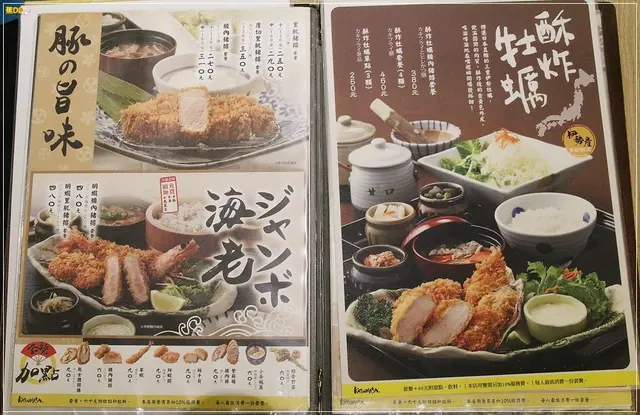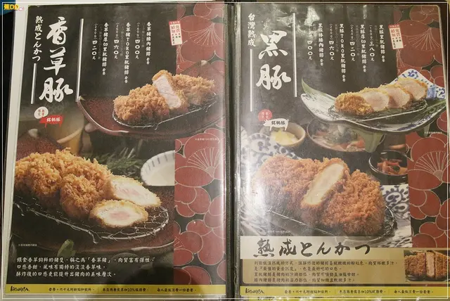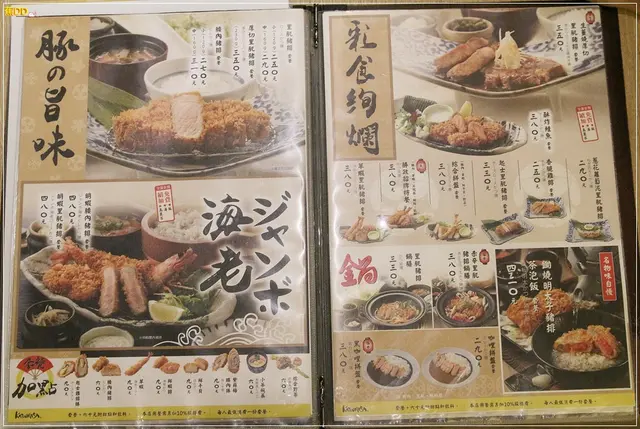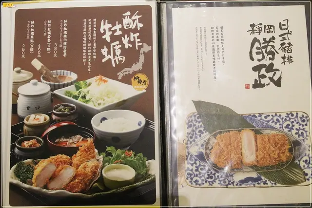 ▼『勝政日式豬排』的菜單,本日阿噗菜單專員忙著磨芝麻,沒空點餐…只好交給職代噗媽了,『勝政豬排』除了提供一般的豬肉及海鮮類,另外還有較高檔的豬肉提供選擇,所以噗爸身為專業的肉類專家,當然…一定是…選擇…肉較多的那一種囉~(噗媽飛踢ing)