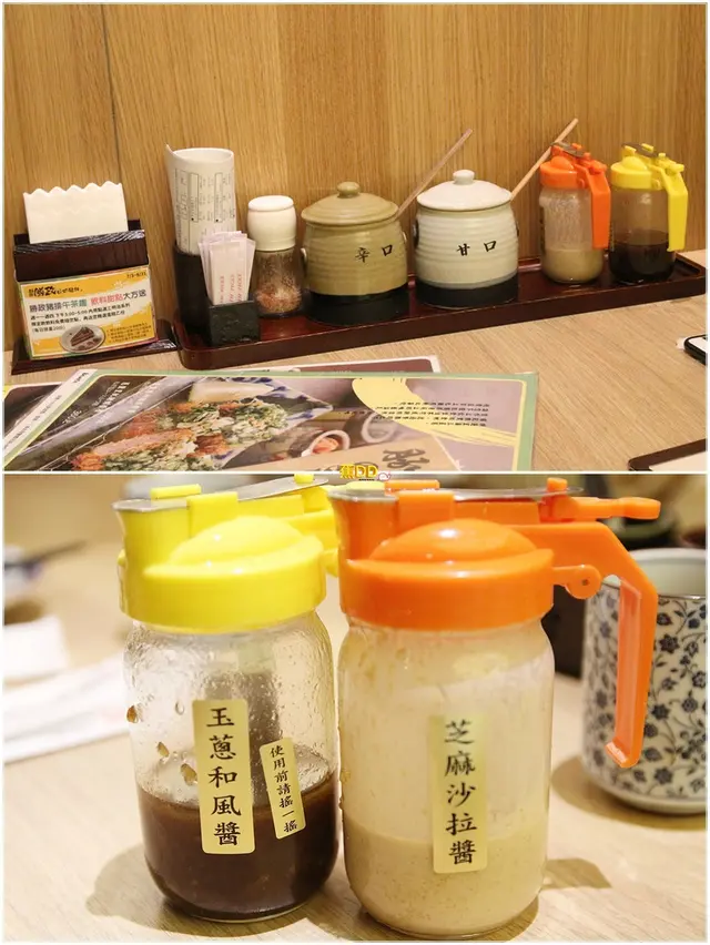 ▼醬料分為肉類及高麗菜絲用途,由左至右為可吃原味的沾玫瑰鹽,辛口是豬排醬不是辣的,是添加一種印度的辛香料,而甘口則是甜味,至於高麗菜絲的沾醬,我們都偏好芝麻沙拉醬今厚加…,和風兄真的滴口未沾…拍謝XD