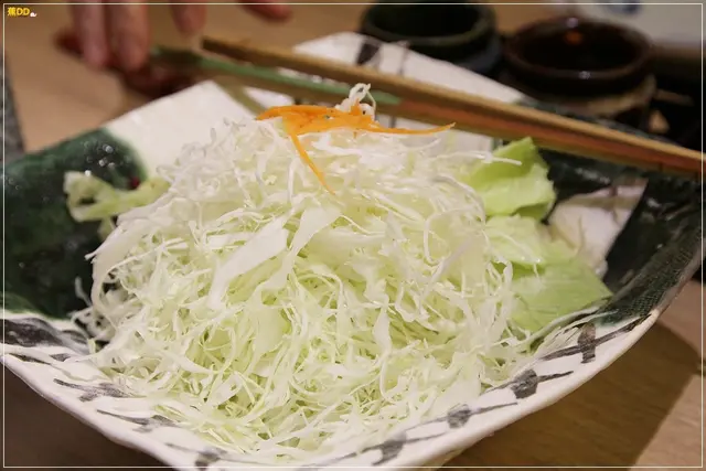 ▼緊接著登場的是高麗菜絲,清脆的新鮮高麗菜細絲,配上微酸甜的胡麻醬汁,讓噗爸光吃這個配飯,一碗飯就快嗑光了!