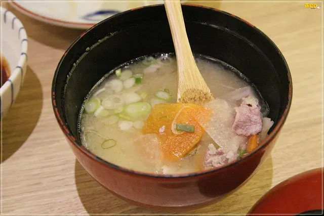 ▼附餐的味增湯味增味略淡,但配料蠻豐富是很實在的一碗