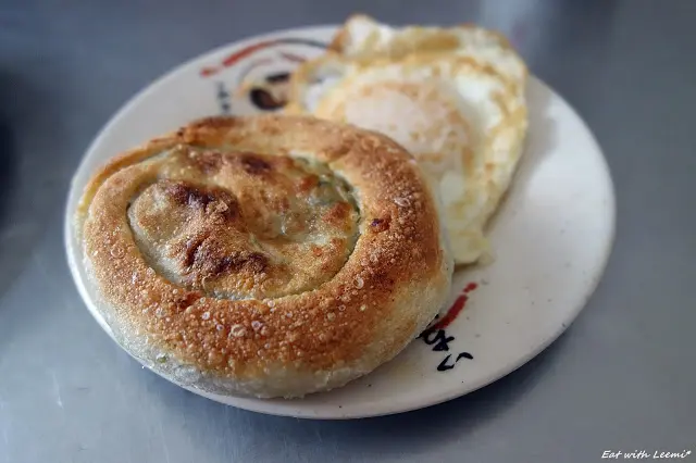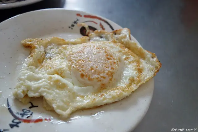 蛋用了很多油去煎,沒特別交代的話會作成蛋黃很生的那種荷包蛋,戳破蛋黃拿來沾餅是我個人特愛的吃法。