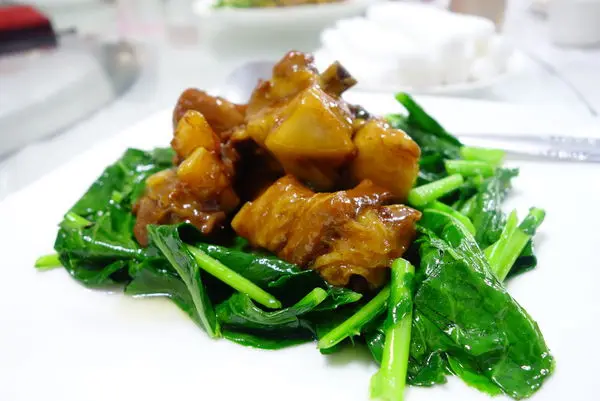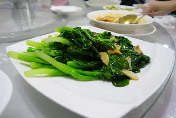 這道菜在我拍完照 桌上轉盤轉個2圈之後上面的排骨居然都被夾光了~到底是誰? 我還問友人不是有點無錫排骨嗎?怎麼一轉眼就只剩青菜了