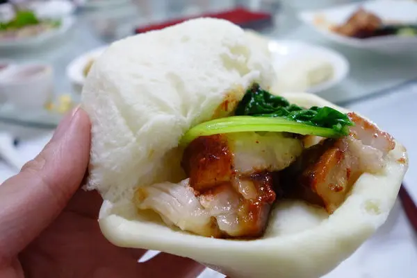 招牌菜~必點! 看看這盤一端上桌顏色多麼的相襯呀! 在大家七手八腳的搶著夾腐乳肉的同時 不斷聽到友人口中一直說怎麼這麼肥 他不敢吃~oh ya!太棒了 少了一個人來搶食;不過說真的單吃確實有點肥 所以我是包著店家自製像刈包一樣的麵包著一起吃就不會覺得太肥 而且是一塊肉加上幾根青菜包著 一口咬下去可以吃到肥肉的油花軟Q軟Q的 又可以咬到青菜青脆響亮的口感 完全很搭