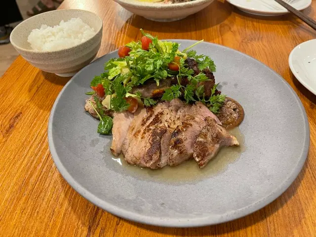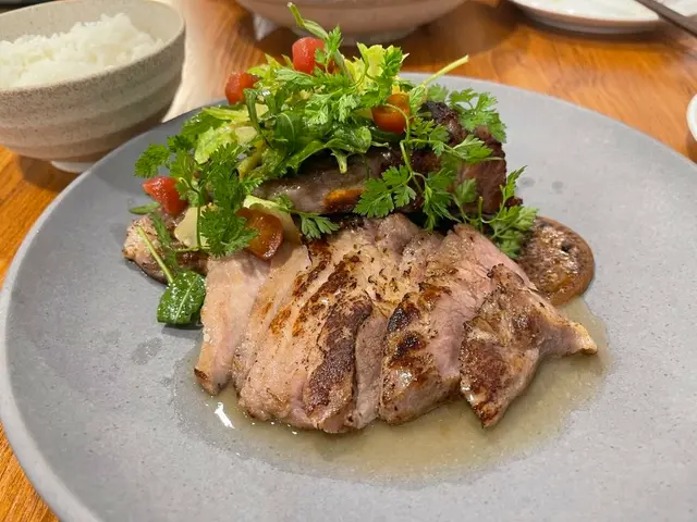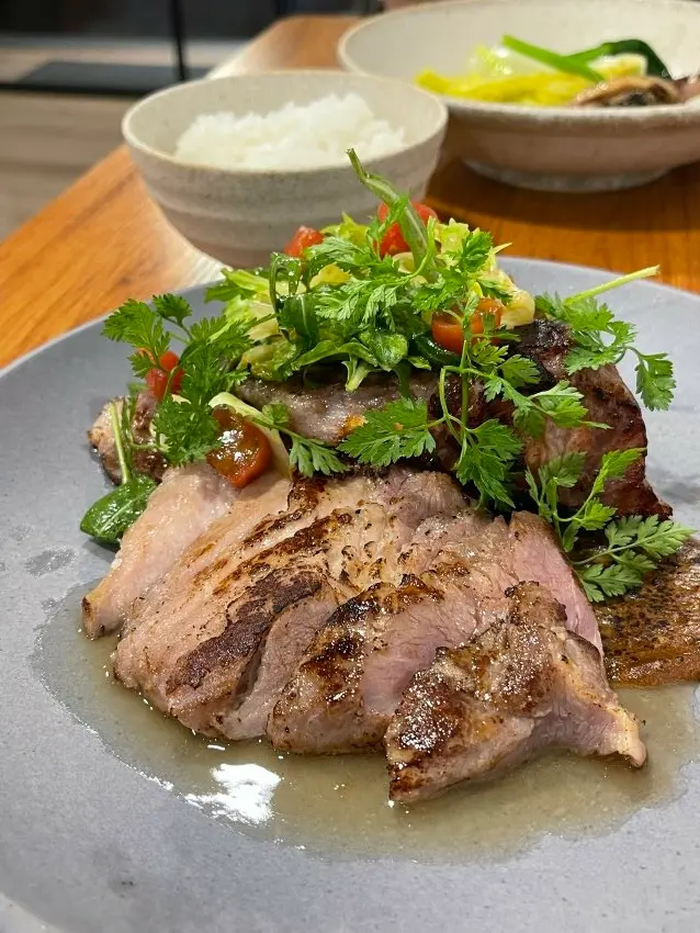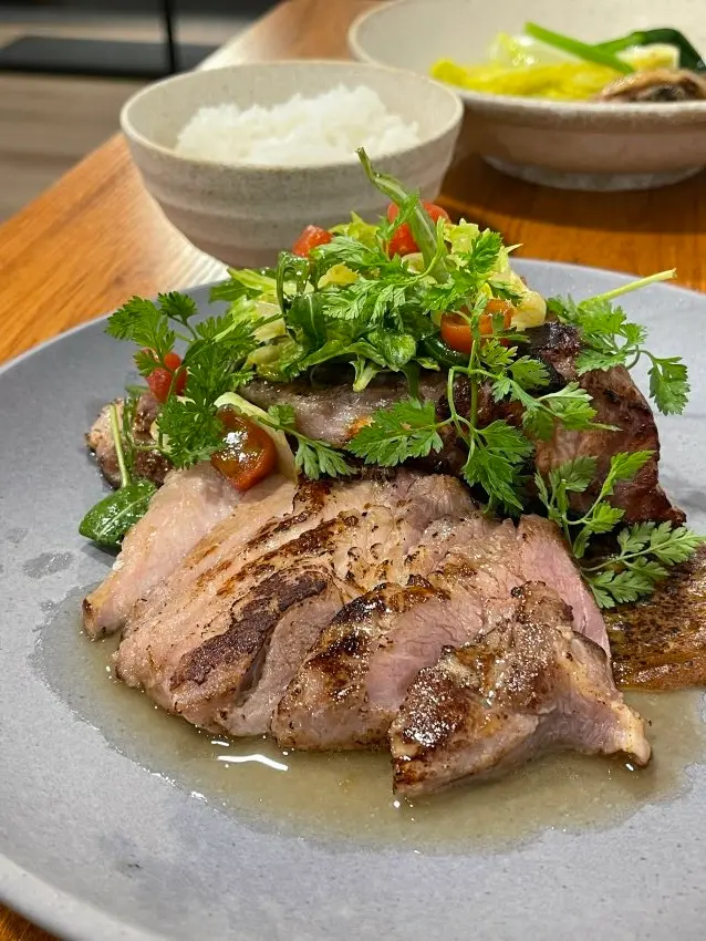 Ω鹽麴黑毛豬.綜合沙拉.焦化味噌。主廚精選特餐 520NTD(單點)+ 山香米 30NTD