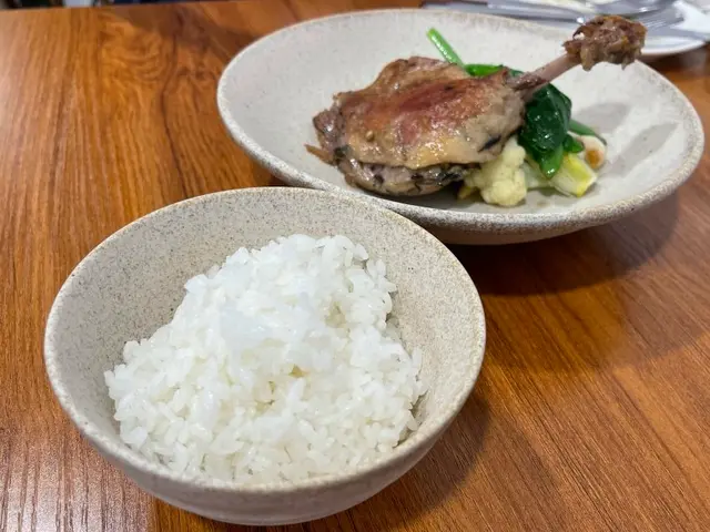 Ω法式油封鴨腿.季節時蔬.關山香米 260NTD。D套餐