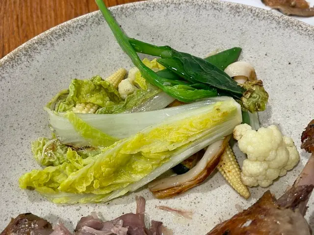 Ω油封鴨腿搭配的青菜還保有清脆口感,入口後的甘甜,與鴨腿有不錯的平衡感~