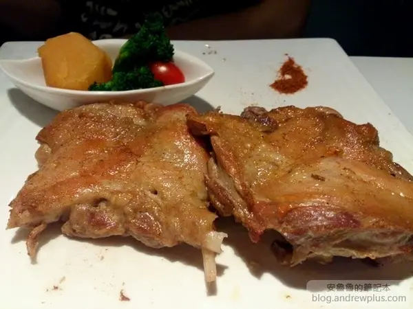 法式烤雞 - 這道菜上桌切開後,我就覺得怪怪的,因為其中一隻雞腿非常的乾,心裡正在犯低估,想說不知道會不會有問題,結果~不出所料,一放到嘴巴裡馬上就吃到雞肉奇怪的腥味,吃了兩口,反正也已經吃很撐,就不想讓怪怪的雞肉往肚子裡去了。