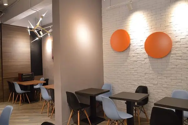 店內空間和橘色的LOGO色系呼應,以溫暖木質調為基礎,
