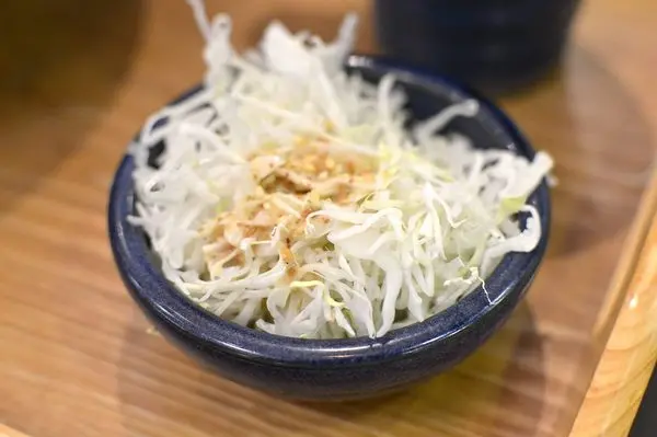 高麗菜絲淋上芝麻風味的沙拉醬,是我喜歡的味道,