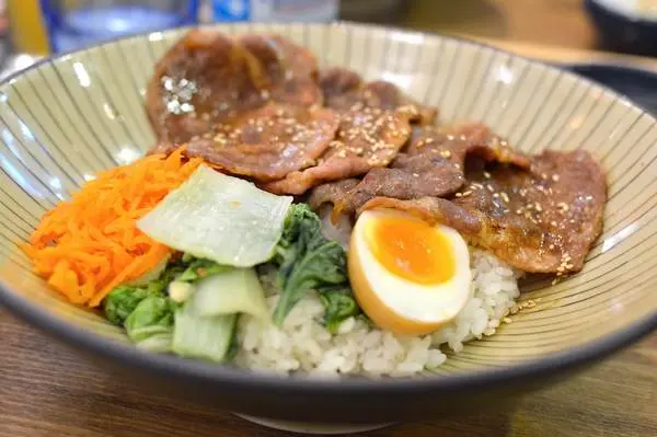 還有CP值很高的燒肉丼飯套餐,套餐均含溏心蛋、沙拉、雞湯,