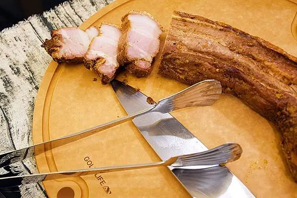 儘管沒有脆皮五花肉的喀滋聲響,但是切下去那股扎實感,就非常真材實料