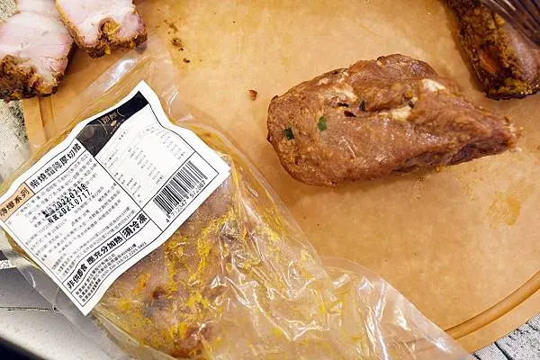 看看這金黃脆皮!從真空包裡面看就已經很驚呆了,等等拆開給大家看