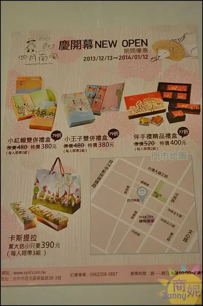 四月南風卡斯提拉 (Taichung) URL: https://s.openrice.com/cHKSmW2z1e1W0 Add.: 台中西屯區朝富路38-3號 Tel.: +886 0423589887