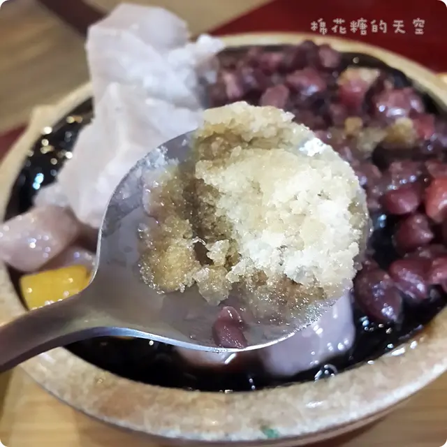 大大碗的冰上桌囉!我點的配料是芋頭、芋園、紅豆~配料整個快要滿出來!用小小的木托盤裝著還蠻有質感的耶~