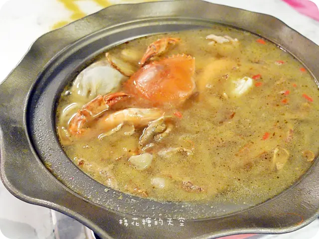 就是這一鍋啦!全台灣首創“紅蟳燒酒雞”!燒酒雞本來就是冬季必吃~那兩蚵把拿手的海鮮食材放進燒酒雞裡,讓湯頭整個更甜美!敏敏這個人肉味精探測器喝過了應該是沒有問題~看看這一整隻的紅蟳!整個不惜成本的啦~冬季限定喔!大家可要把握機會上山來吃好料唷!