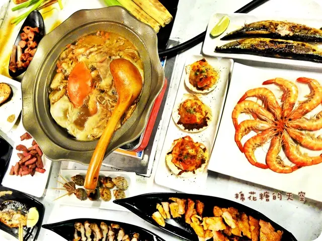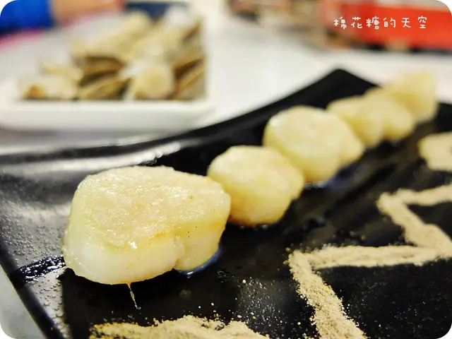 面對兩大熱呼呼的溫暖鍋物~原本就是那兩蚵招牌的多種烤物們也沒有一點遜色喔!招牌的烤鮮蚵擺成放射狀~裡頭的鮮蚵烤得恰到好處。敏敏最愛的蛤蜊、干貝也是滿滿海味~新鮮的食材就不用加太多額外的調味,原味就是最棒的滋味!