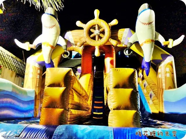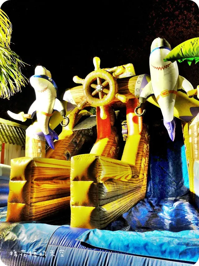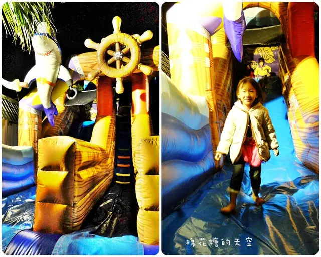 厲害的還不只這樣喔!一停好車就發現的~就是這座氣墊溜滑梯啦!餐廳裡有溜滑梯不稀奇~但是有這麼大的氣墊溜滑梯就稀奇啦!這樣的氣墊遊戲區在各大遊戲區裡小朋友要玩一次少說也要一兩百元~來到那兩蚵用餐的朋友通通都免費玩喔!