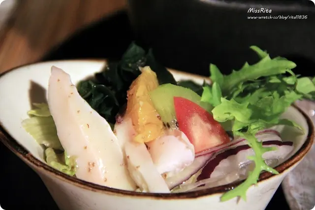 裡頭的配料蠻特別的,有蔬菜、花枝、奇異果、番茄等~