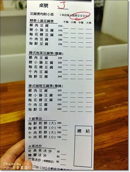 其實品項很簡單,以豆腐鍋為主,分幾種湯頭,其餘內容物都差不多,還有海鮮煎餅跟飲料這樣。