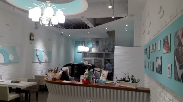 恬心朵朵 裝潢馬卡龍色調以蒂芬妮藍與純白為主要基調,