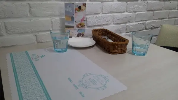 淺色桌面簡單的放著幾樣東西…華麗的部份就交給餐點吧!
