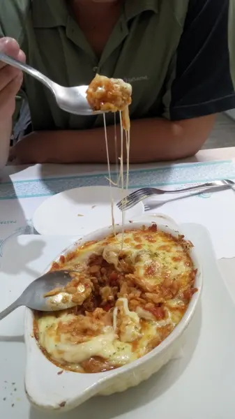 剛烤好的燉飯真的超級好吃!!! 熱騰騰的冒著煙,剛吃會燙口的熱度,