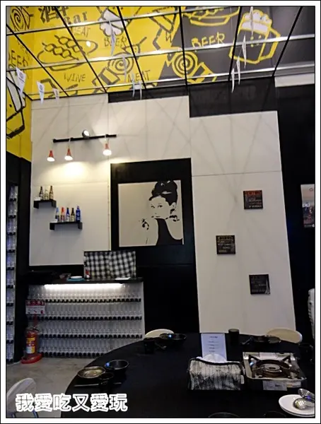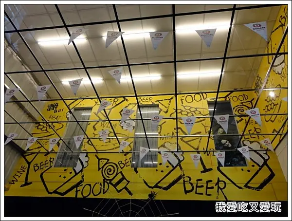 就裡頭的裝潢設計還挺詭異特別,利用黃色的牆面(看了很嘿皮的顏色),用萬聖節的佈置,還有魔鬼使者還有蜘蛛網