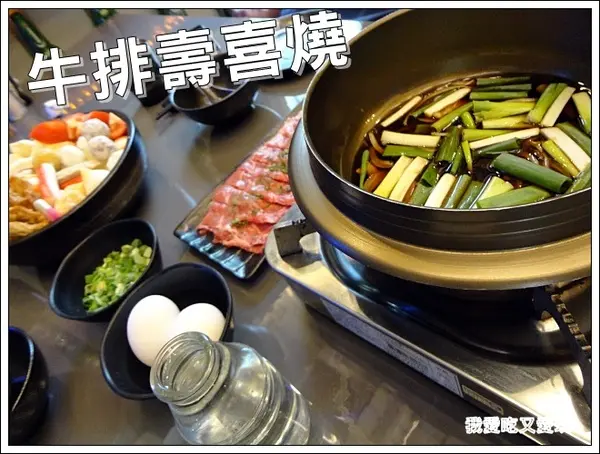 又是鍋又是菜盤還有一瓶小巧的水,水是用來加壽喜鍋底的,所以水用完記得再跟服務生說一下補水唷~