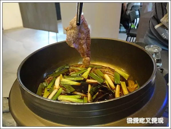 第一道程序就是要我們先川燙牛肉片,因為一開始的鍋底是相當鹹的,其實不用沾取任何醬料,這樣的肉片吃起來就很美味了!