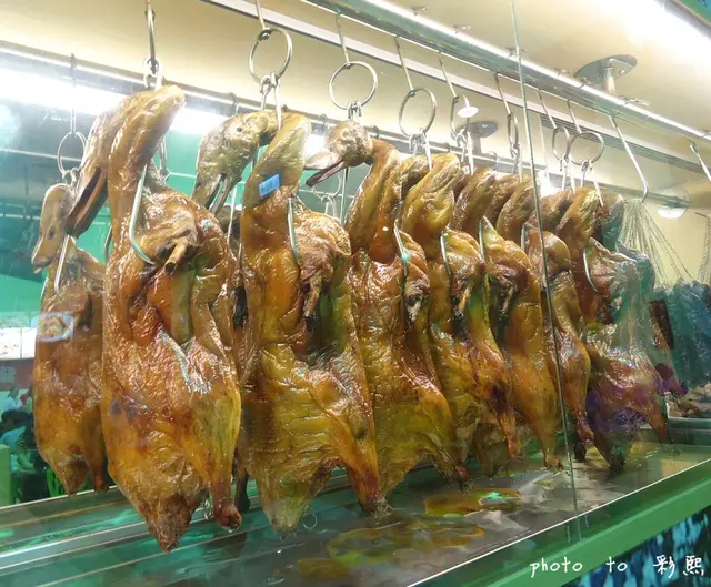 他們最旁邊有個透明的櫥窗 有掛著鴨、鵝....(牠們的油...在滴)