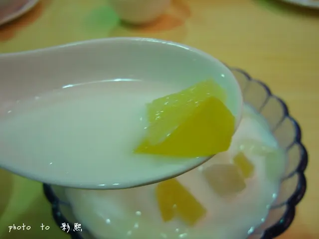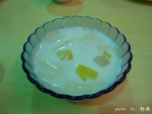 裡面有杏仁豆腐、椰果跟鳳梨~