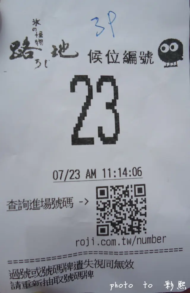 彩熙是剛好12點去抽號碼牌的〈不過號碼牌上打著11:14,可能是店家先打好的〉~