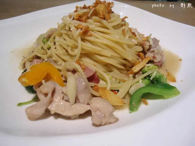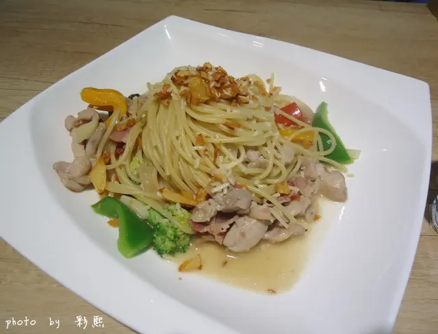 這道是清炒的義大利麵, 吃起來很爽口、微辣~