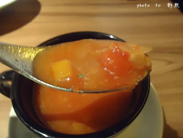 下面還有馬鈴薯厚片,吃起來鬆軟 又入味(它的醬汁 是茄汁的