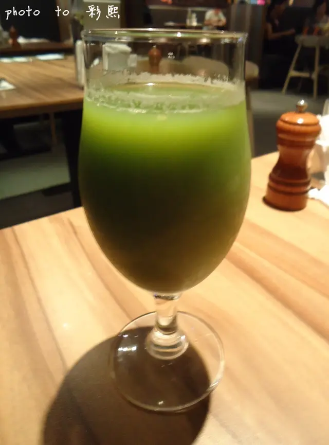 這裡面加了地瓜葉、蘋果、芭樂現打的,蠻特別的一種飲料(芭樂味偏重~