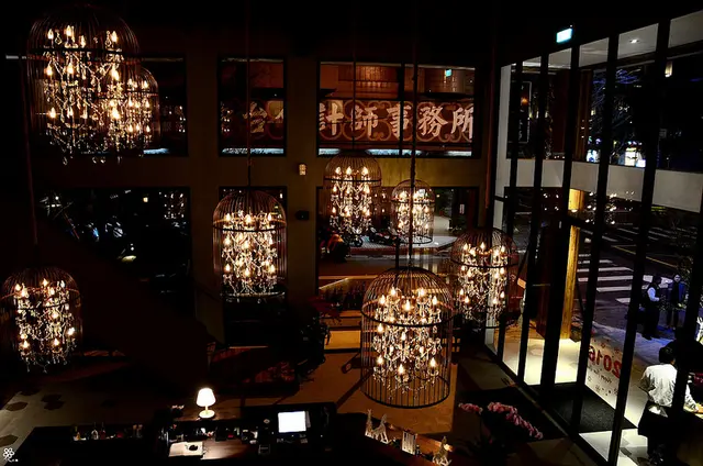 順著階梯步下,盞盞水晶燈光搖曳,搭配柔和的背景音樂,