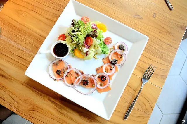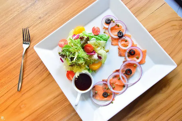 招牌鮭魚洋蔥沙拉的擺盤,就像是我的水彩調色盤般,