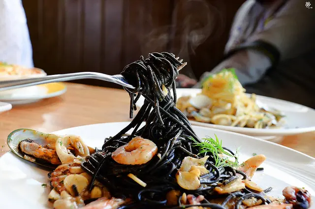 辣味海鮮墨魚黑麵選用Baronia的墨魚麵,