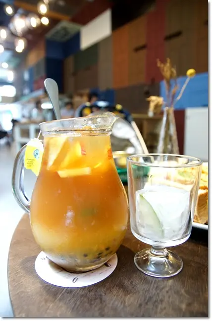 不會澀口的水果茶裡有著不會太甜膩的水果香甜味,尤其....放在杯子裡的冰塊超吸睛~有檸檬片冰在裡面