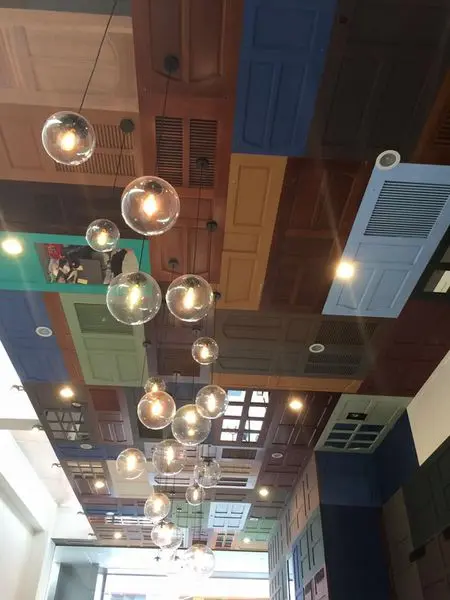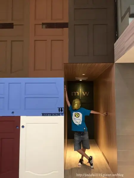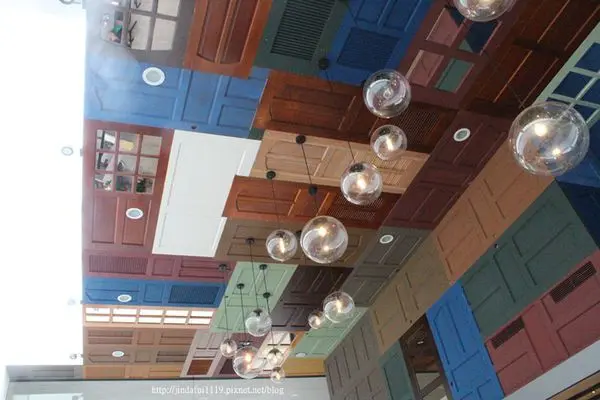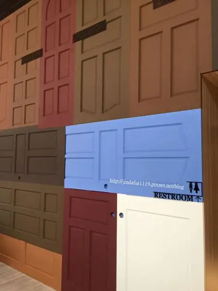 此愚婦有所不知,木門的木門們(繞口令嗎?)在牆上在天花板上吶~~~~~將各種顏色的木門當成裝飾佈滿牆面,令人為之一亮,也有種置身在怪獸電力公司的感覺