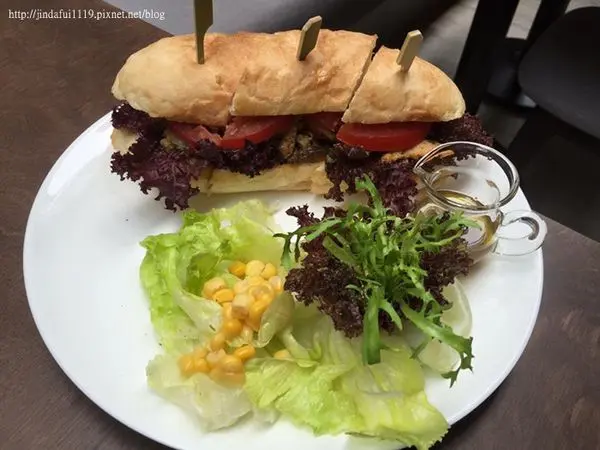 這是漂亮店員推薦給我們的,三明治份量紮食不錯吃,生菜與油醋醬的部分也是挺好的