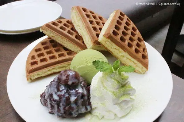 版面(?)簡單整齊又不會令人感到空虛,鬆餅烤得恰到好處,友人對於紅豆和抹茶冰淇淋也給予很棒的評價。