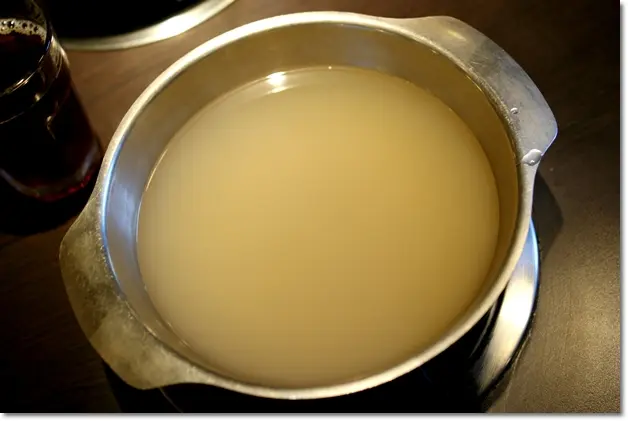 所謂的和風燒鍋就是使用最原始的清淡湯頭,看起來沒什麼,但喝起來清爽、鮮甜,其實還不錯