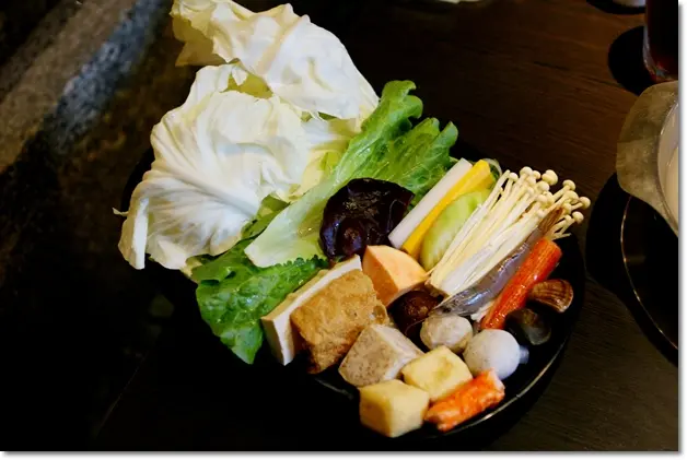 用眼睛目測盤子裡搭配了近15種的火鍋料、蔬菜、海鮮類食材,且最重要的是看的出新鮮