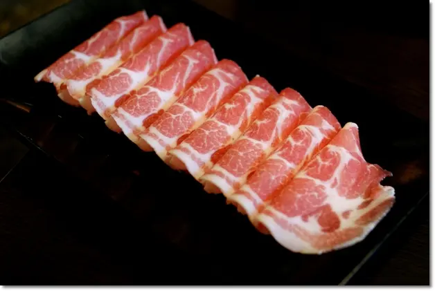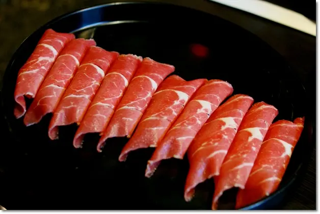 但這盤肉片看來是切的有點薄了些,涮起來是沒有柴、也不會乾,但吃起來就是沒什麼fu!!