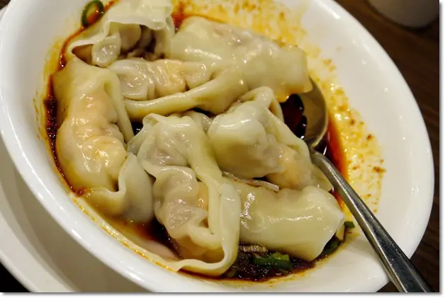 上網google時發現很多人都會點『鼎泰豐』的「紅油抄手」,所以這次當然不免俗的要給它點來吃吃~