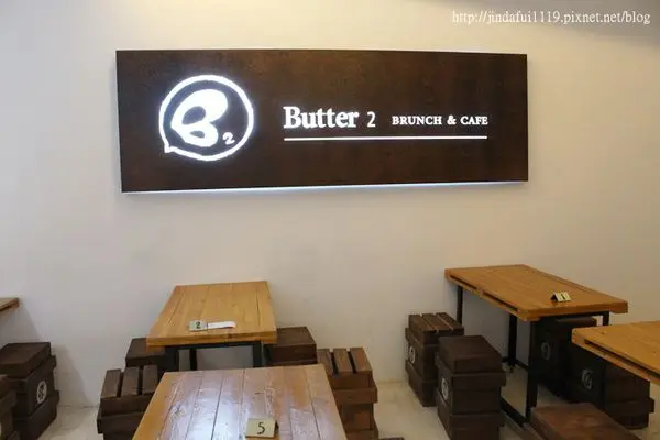 一樓的座位數較少,約莫六桌而已,個人覺得稍嫌擠了一點。強烈建議要來最好先打電話預約,不然Butter的生意爆好,今天明明是平日早上客人卻也如雨後春筍般不停冒出來,將近12點的時候聚集了一些客人擠在吧台前門口那邊等候,隱約有聽到店員跟客人表示要等四十分鐘(當下真的很慶幸我們在9點整開店之際就來報到了)