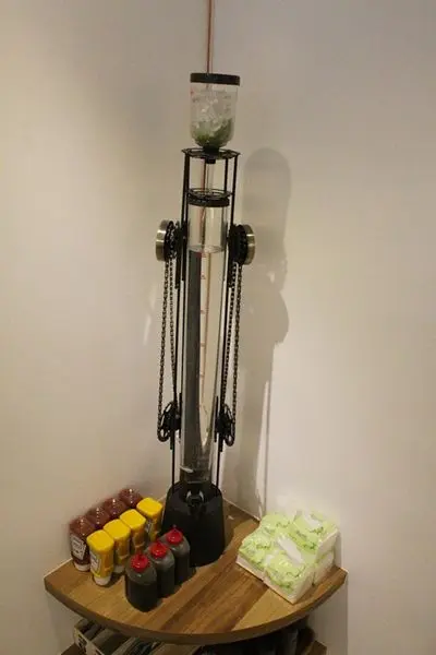 餐具、衛生紙、醬料、飲水都要自行取用,話說這飲水機(?)滿酷的!