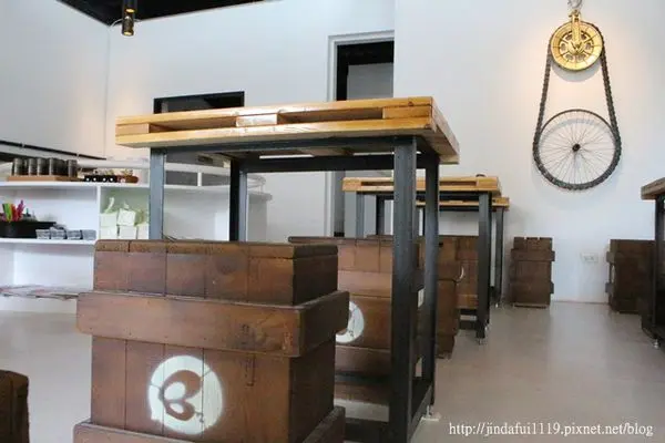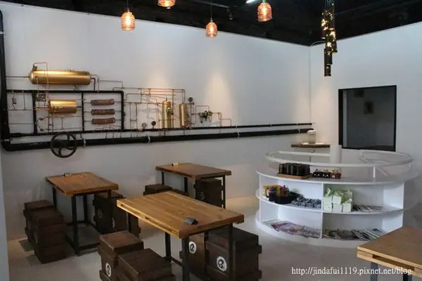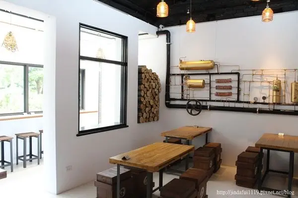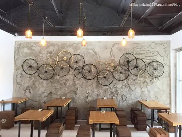 走上旋轉樓梯就來到了二樓,這兒隨處可見工業元素,一些金屬輪框、管線、齒輪等等,只能說Butter 就是徹頭徹尾會是迷戀工業風的人的菜