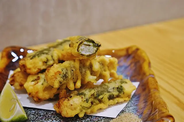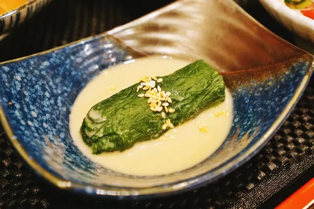 接著紫蘇的特殊清香在嘴中擴散跟與山藥的脆口軟綿形成鮮明的對比